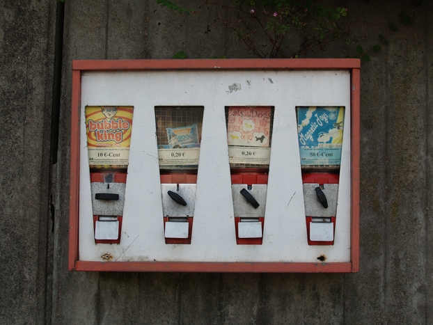 Kaugummiautomat an der Perouser Straße in Malmsheim (Stadt Renningen, Landkreis Böblingen), aufgenommen am 6. Juli 2012.