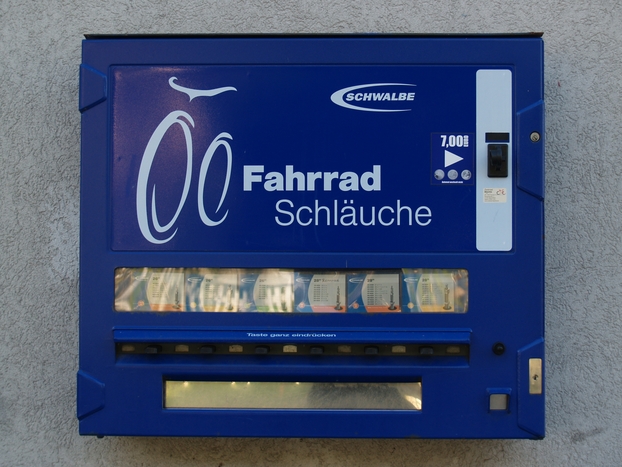 Dieser Fahrradschlauchautomat befindet sich an einem Radsportgeschäft an der Ecke Allmendstraße / Mattenweg in Oberwolfach (Ortenaukreis). Folgt man der Allmendstraße einige Meter talabwärts, so begegnet an der Ecke zur Weihermatte noch folgender Kaugummiautomat: