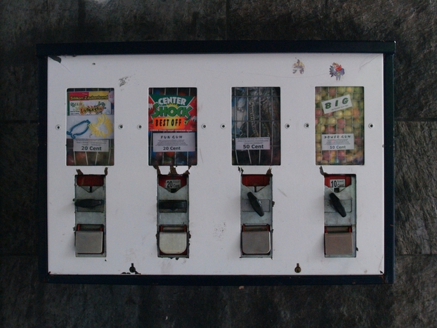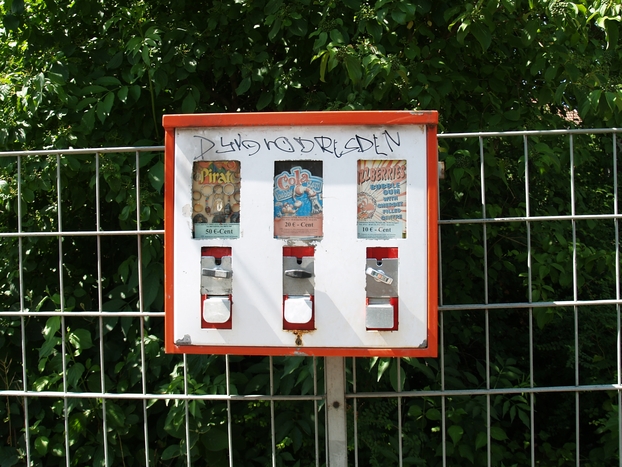 In der Stuttgarter Trabantenstadt Freiberg sind kaum Automaten anzutreffen. Ein einzelner Kaugummiautomat befindet sich am Ladenzentrum in der Wallensteinstraße. Die Aufnahme entstand am 13. Juni 2011.