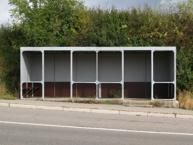 Endzeit-Bushaltestelle: Abzweig Aurich (Stadt Vaihingen an der Enz, Landkreis Ludwigsburg). Aufgenommen am 8. Oktober 2011.
