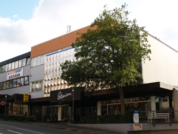 Schönes Beispiel für schlichte Architektur der Moderne: das 1966 erbaute Kaufhaus Sämann an der Stuttgarter Straße in Vaihingen an der Enz (Landkreis Ludwigsburg) mit charakteristischer Metallfassade. Aufgenommen am 8. Oktober 2011.