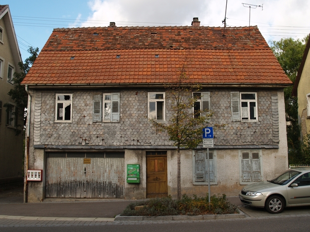 Der Rundgang durch den Vaihinger Stadtteil Aurich (Landkreis Ludwigsburg) beginnt bei diesem imposanten Fachwerkhaus an der Nussdorfer Straße. Direkt gegenüber befindet sich ein dreikammeriger Kaugummiautomat: