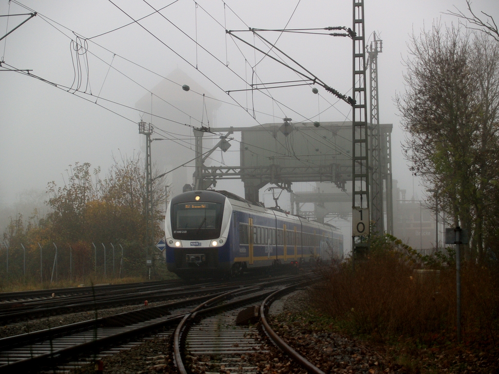 Die zwischen 1946 und 1954 erbaute Rollklappbrücke zählt zu den herausragenden technischen Denkmalen Oldenburgs. Sie überspannt die hier als Seeschiffahrtsstraße genutzte Hunte in der Nähe des Hauptbahnhofs. Befahren wird sie von den Zügen der Hauptstrecken nach Bremen und Osnabrück.