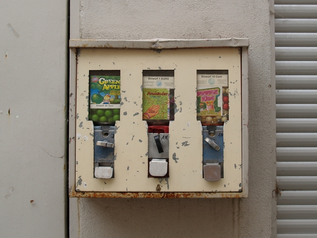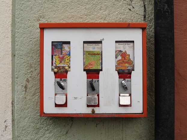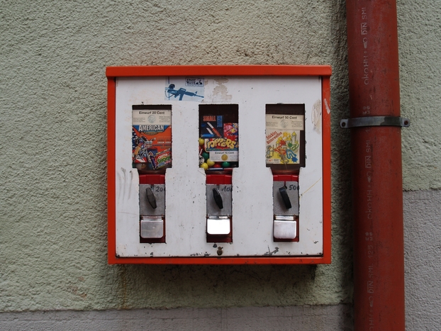 An einem Gechäft in der Kochgasse ist ein weiterer Kaugummiautomat anzutreffen.