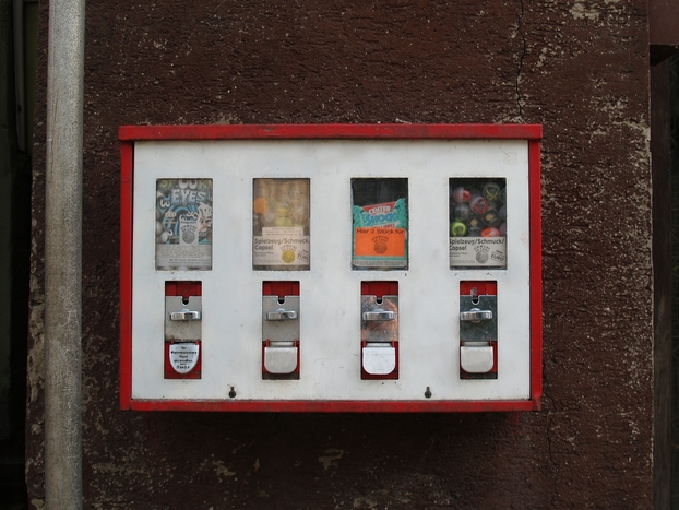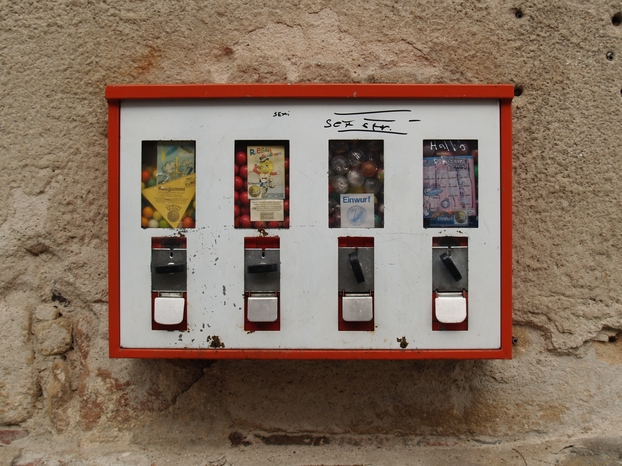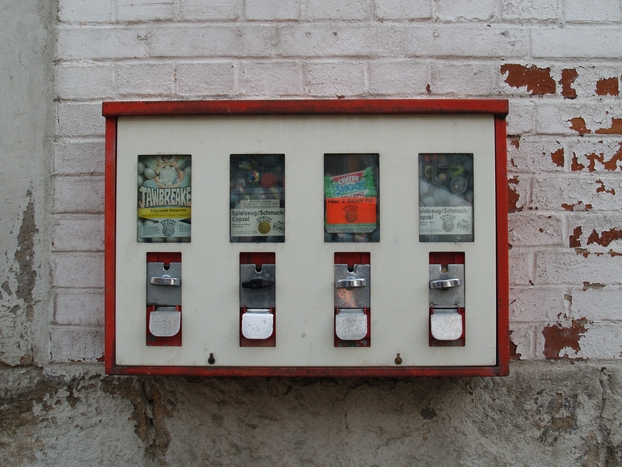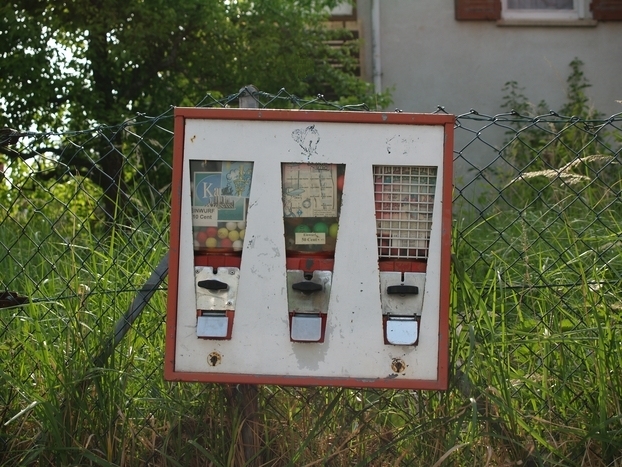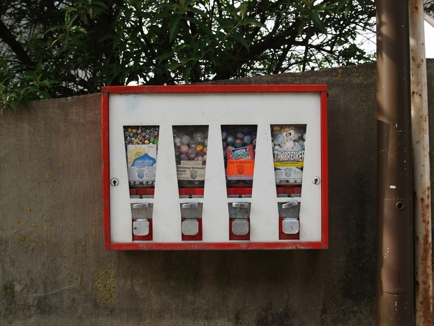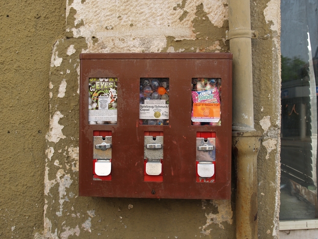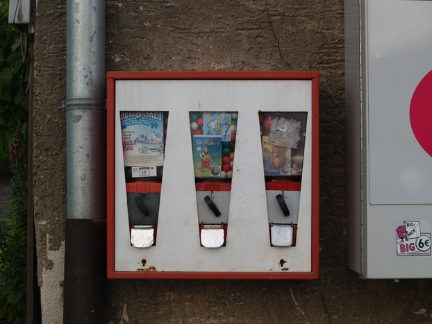 Gegenüber ist an einer Mauer ein weiterer Kaugummiautomat anzutreffen.