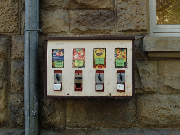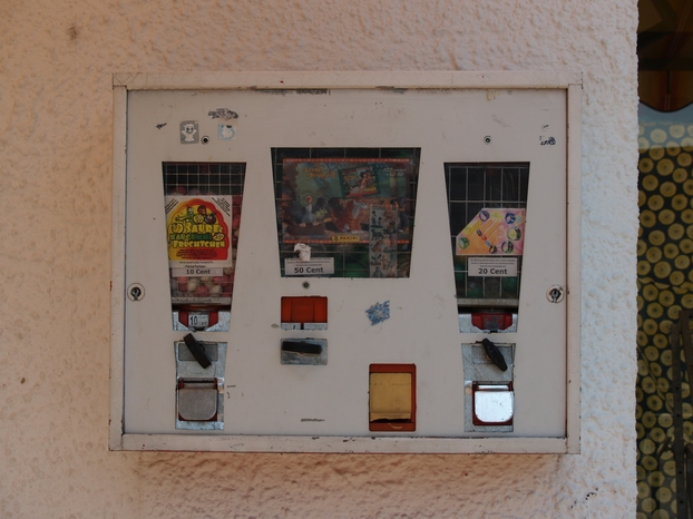 An einem kleinen Lebensmittelladen am Hattinger Platz ist ein weiterer Kaugummiautomat zu finden: