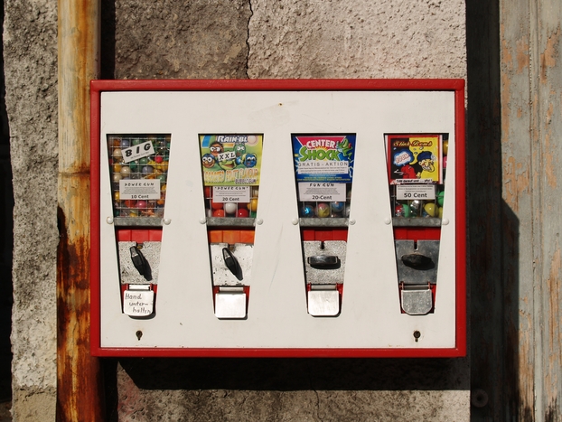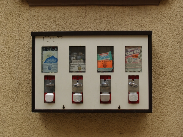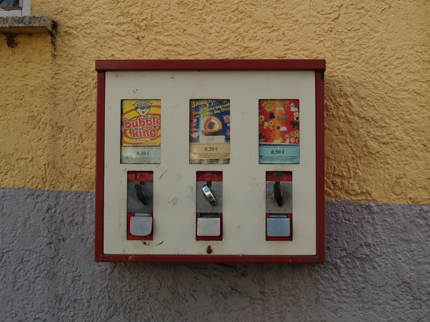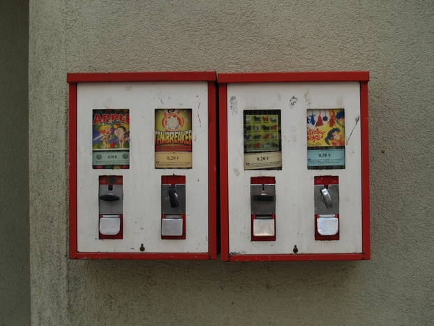 Am Kaugummiautomaten sind auch Stinkbomben im Angebot.